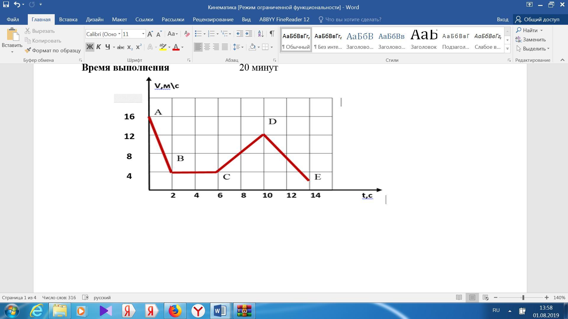 d) Вычислите пройденный путь за интервал времени [10-14] c.