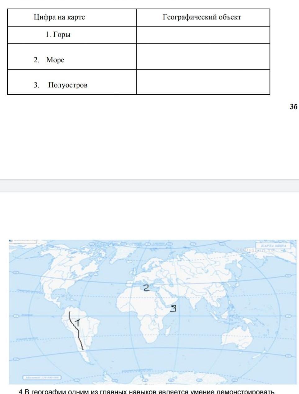 Помогите пожалуйста, скажите какая гора на цифре 1 , какое море на цифре 2 , и какой полуостров на цифре 3