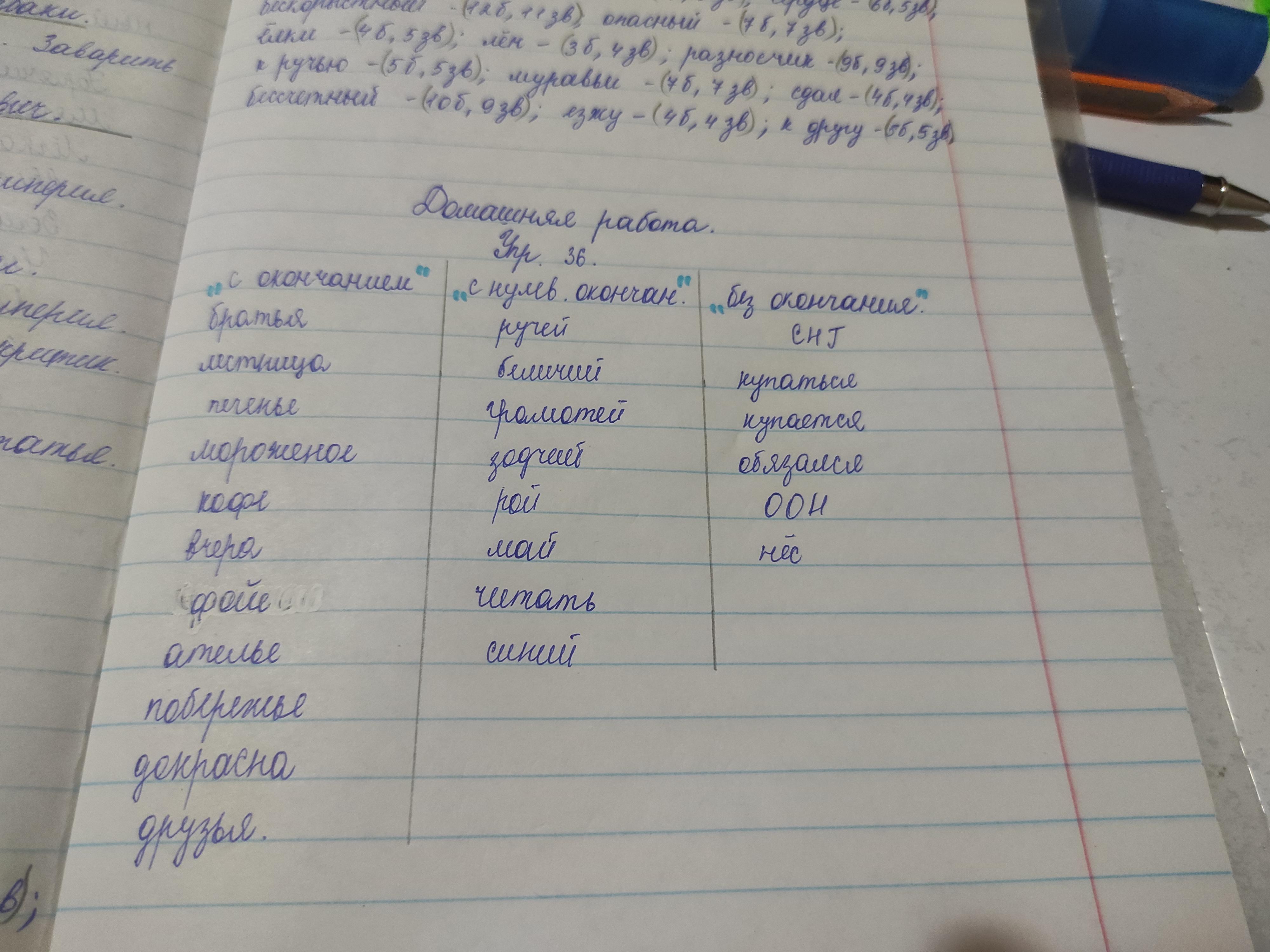 Запишите слова в три колонки : в первую-слова с окончаниями, во вторую-с нулевыми окончаниями, в третью-без окончания. !