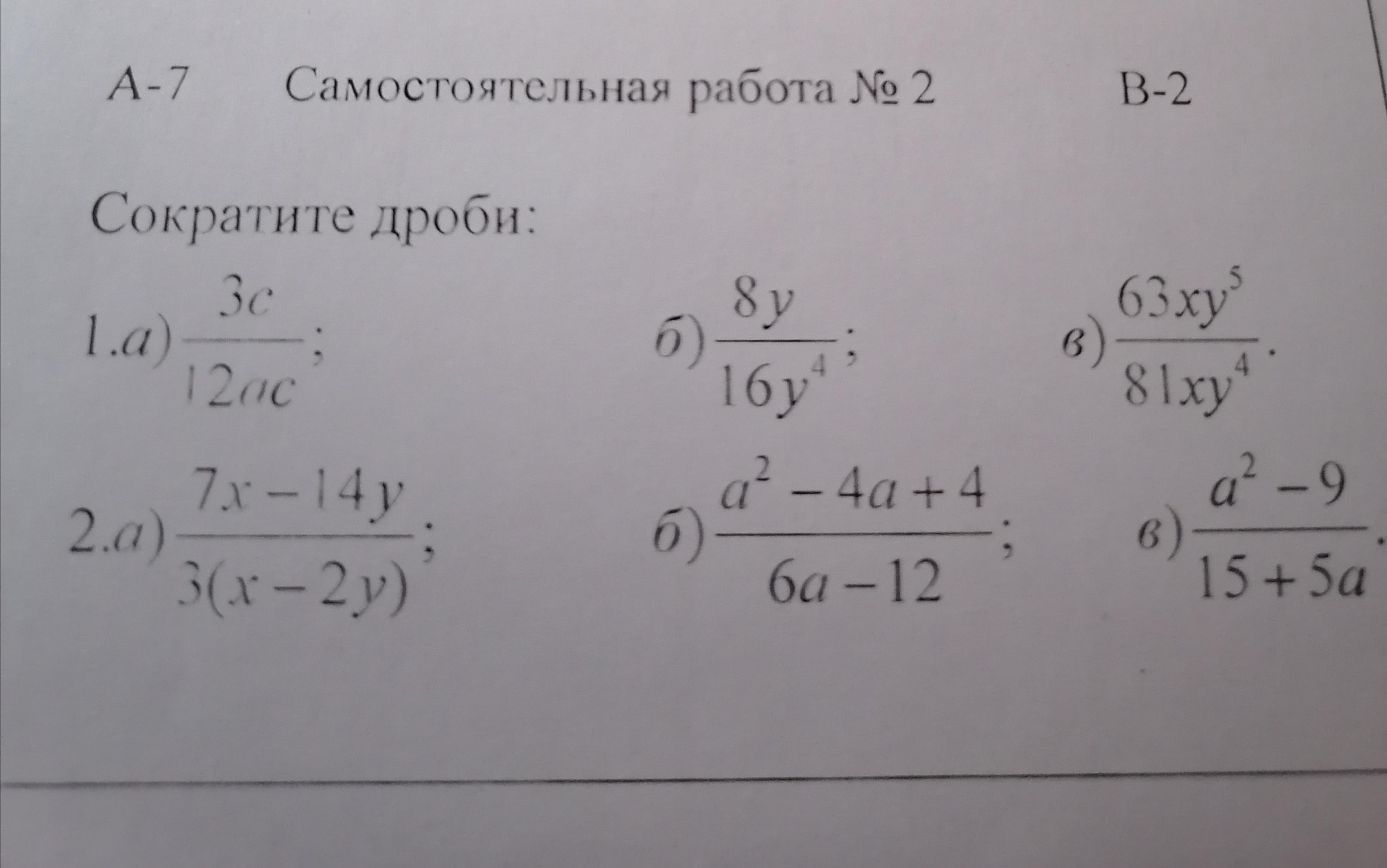 в первом задании всё легко сокращается. Во втором задании мы раскладываем многочлен на множители с помощью формул сокращённого умножения и выносения общего множителя,а потом сокращаем. Так же,как и я зачёркивай(это не ошибка,а сокращение)