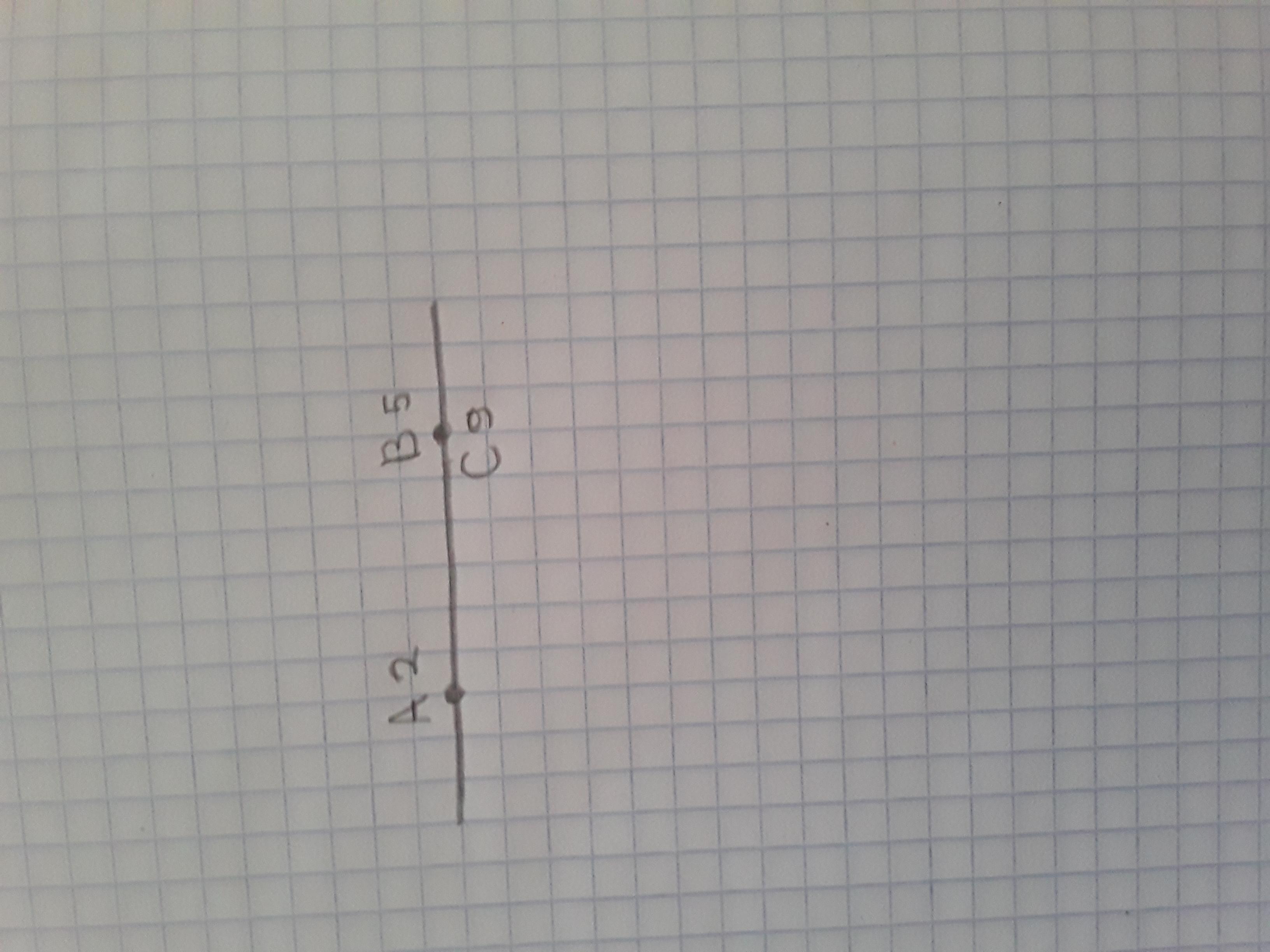Начертите координатный луч, взяв за единичный отрезок две клетки тетради. Отметьте на луче точки А(2), В(5),С(9)
