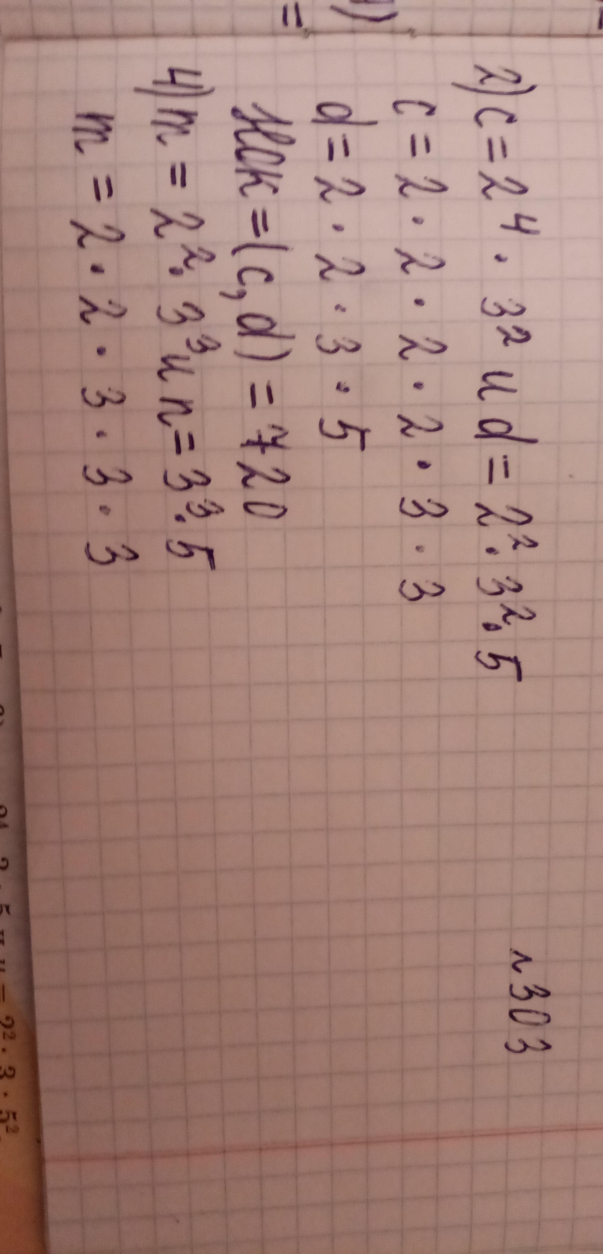 Это ответ на 303. Найдите наименьшее общее кратное натуральных чисел, представленных в виде произведений простых множителей. 5 класс