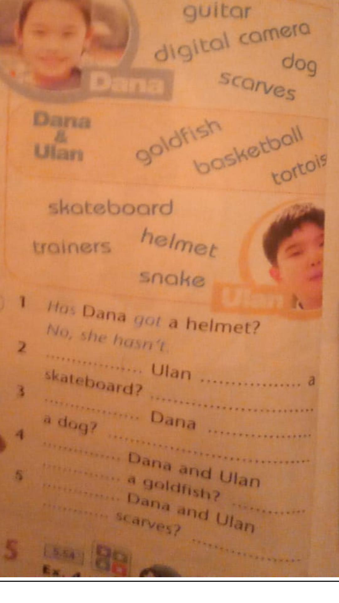 4.Have Dana and Ulan got a goldfish? Yes, they have