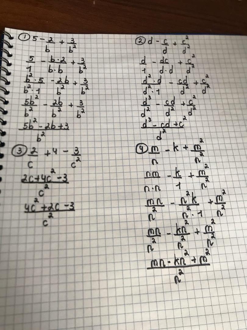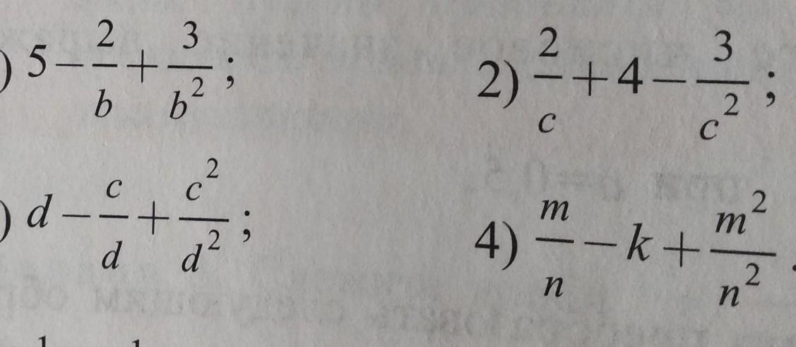 1) Ответ: (5b^2 - 2b +3) / b^2 (тут все выражение записываем под знаменателем b^2.
