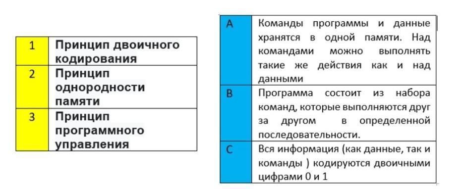 Установи соответствие между названием принципа фон Неймана и его описанием.