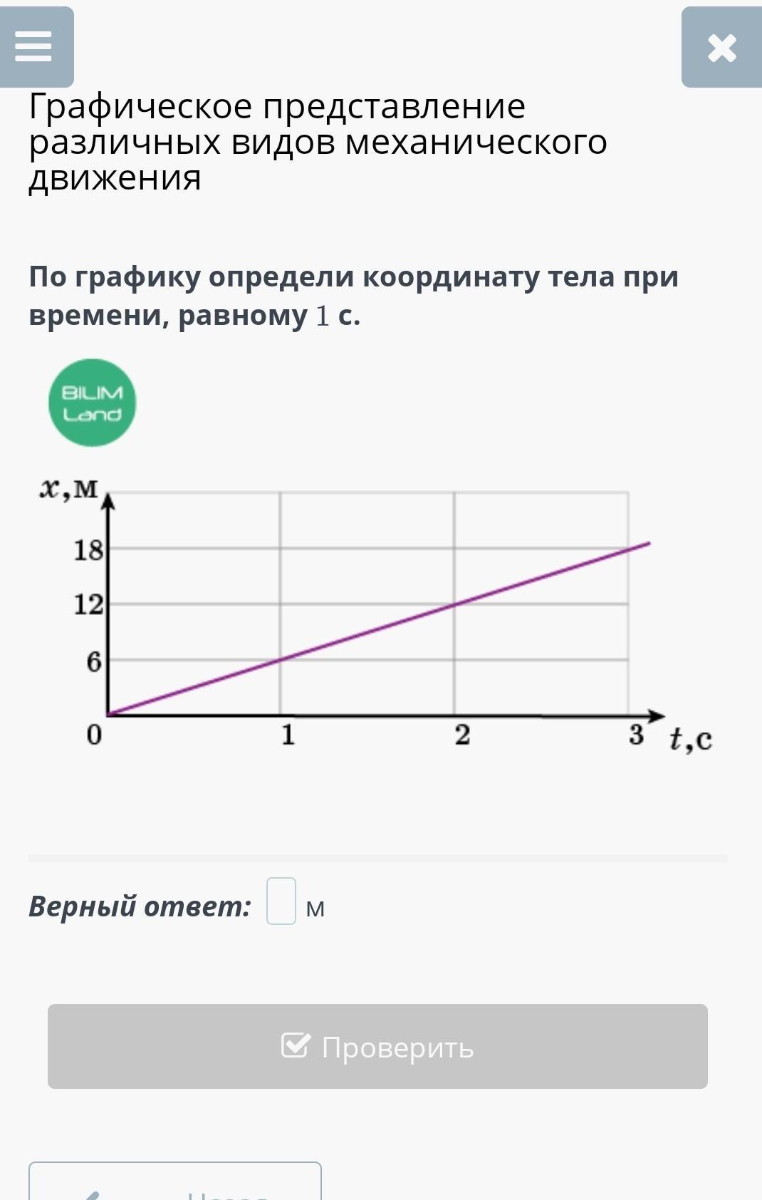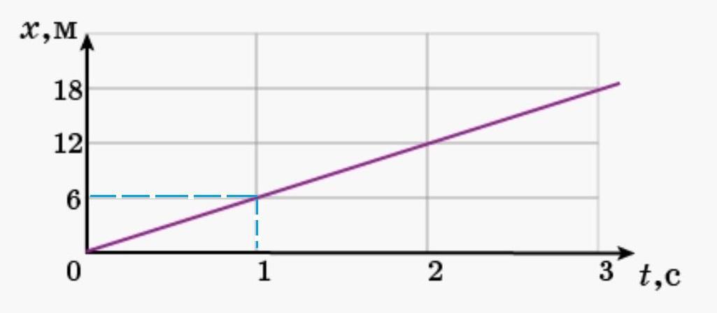 По графику определи координату тела при времени, равному 1 с.