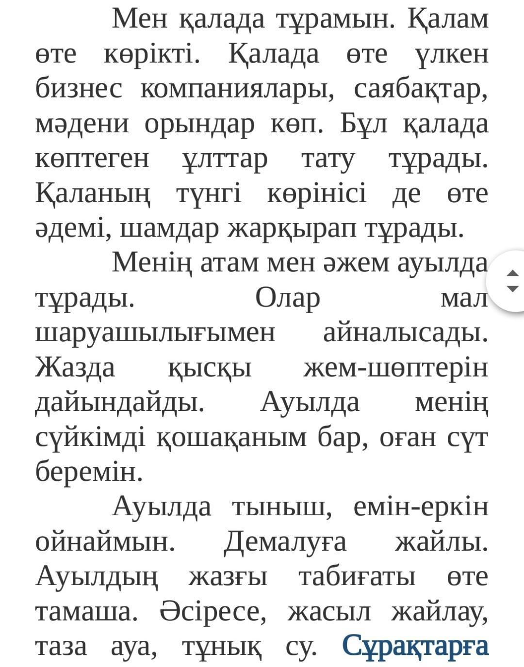 Көрікті,үлкен,мәдени,тату,әдемі,сүйкімді,тыныш,емін-еркін,тамаша,жасыл,таза,тұнық