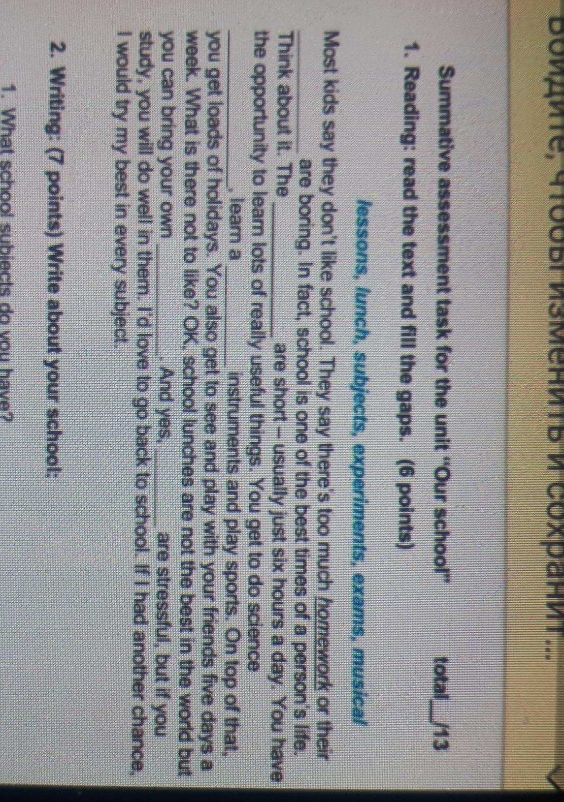 Most kids say they don't like school. They say there's too much homework or their the best times of a person's life. Think about it. The are short usually just six hours a day. You have the opportunity to learn lots of really useful things. You get to do science are boring. In fact, school is one of instruments and play sports. On top of that, you get loads of holidays. You also get to see and play with your friends five days a week. What is there not to like? OK, school lunches are not the best in the world but you can bring your stressful, but if you study, you will do well in them. I'd love to go back to school. If I had to learn a own And yes, another chance, I would try my best in every subject.