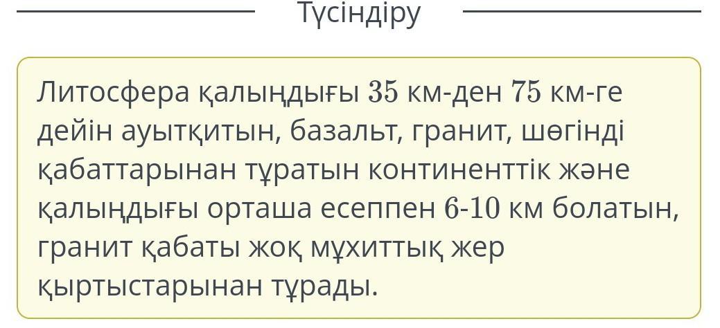 Ұсынылған сөз тіркестерінен литосфераның құрылымы туралы тұжырымдама құр.