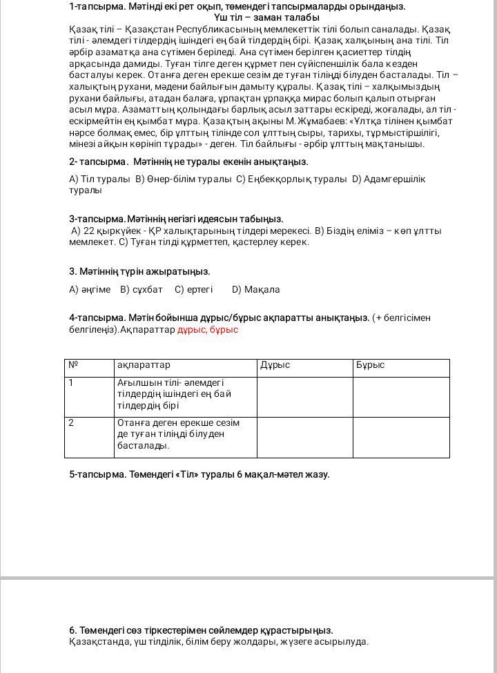 5)Қазақстанда білім беру жолдары үш тілдік жүзеге асырылуда