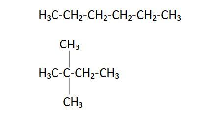 Напишите структурные формулы двух углеводородов состава C6H14, имеющие максимальное и минимальное число первичных углеродных атомов соответственно.