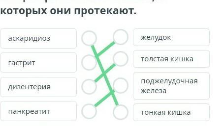 Установи соответствие между болезнями пищеварительной системы и отделами пищеварительного канала, в которых они протекают: