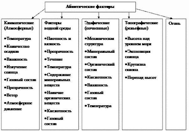 Температура, влажность, ветер, снег, вода, химические, радияция, климат, гидросфера, дождь и т.д.