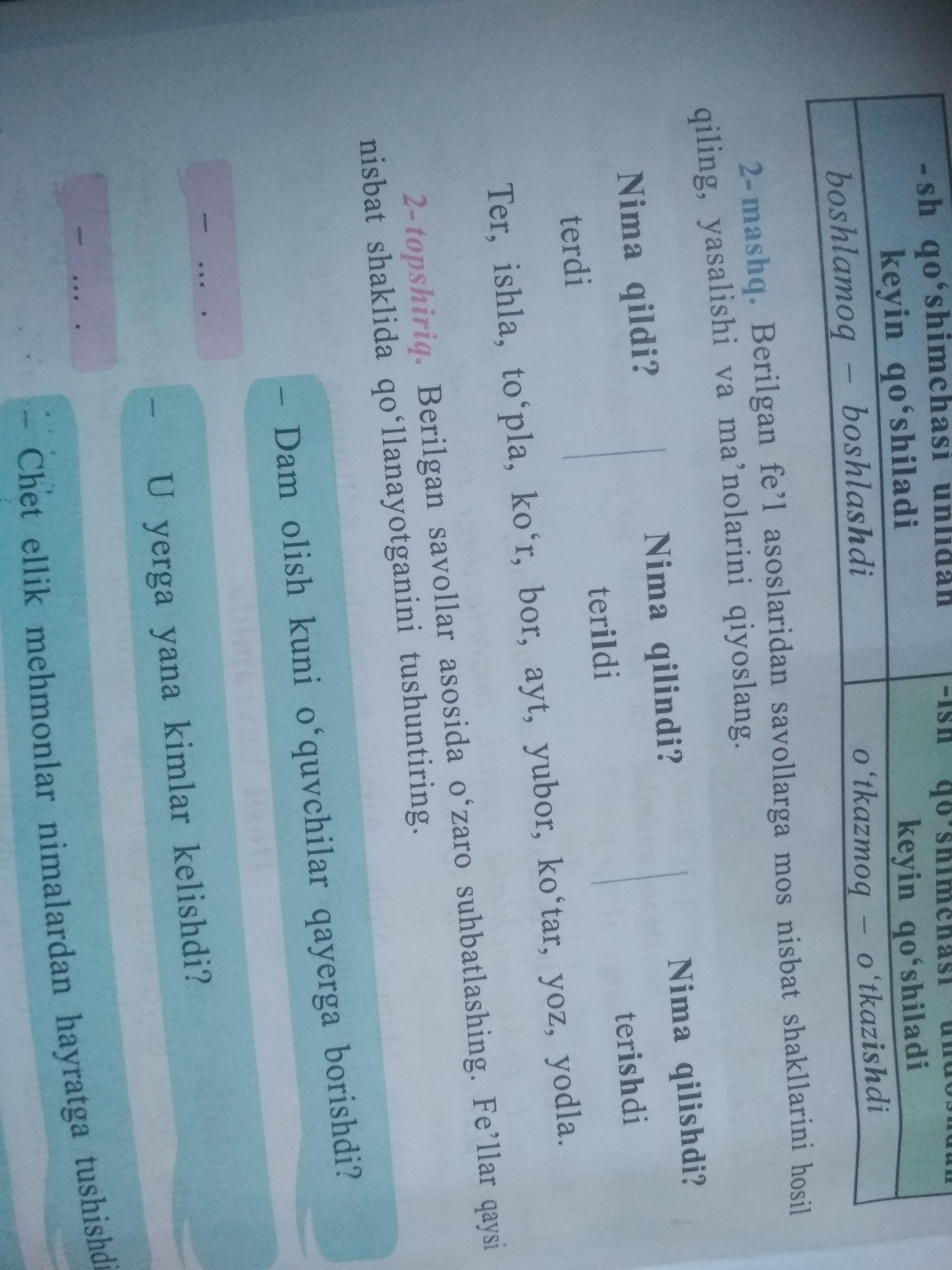- Dam olish kuni o'quvchilar qayerga borishdi?