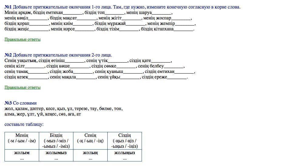 1.Менің арқам, біздің емтиханымыз, біздің тобымыз, менің шаруам.