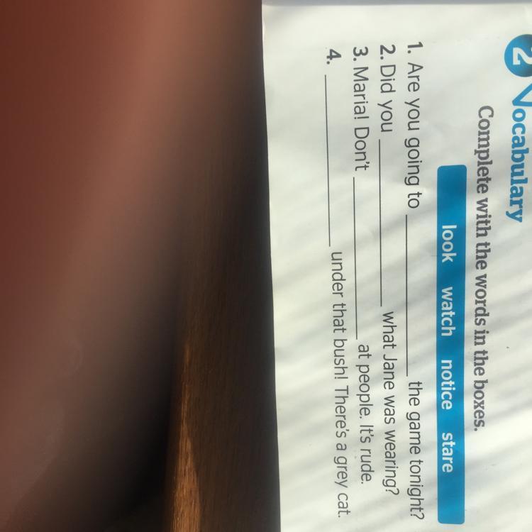 1.watch 2.notice 3.stare 4.look