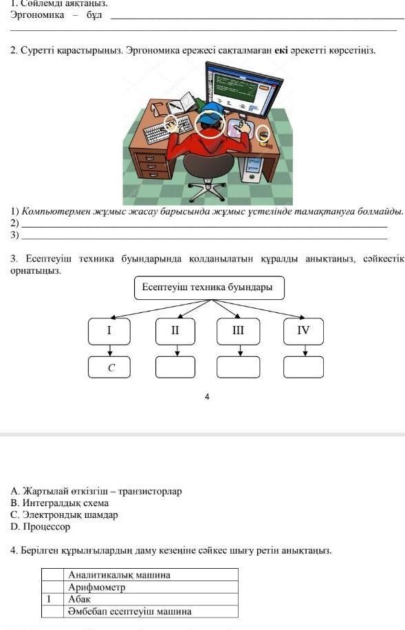 1)Эргономика (гр. ergon – жұмыс + nomos – заң) – еңбек құралдары мен үдерістерін оңтайландыру арқылы еңбекке қолайлы жағдай жасау мақсатымен адамды (адамдар тобын) және оның қазіргі заманғы өндірістің еңбек үдерістеріне қатысуын зерделейтін ғылыми пән.