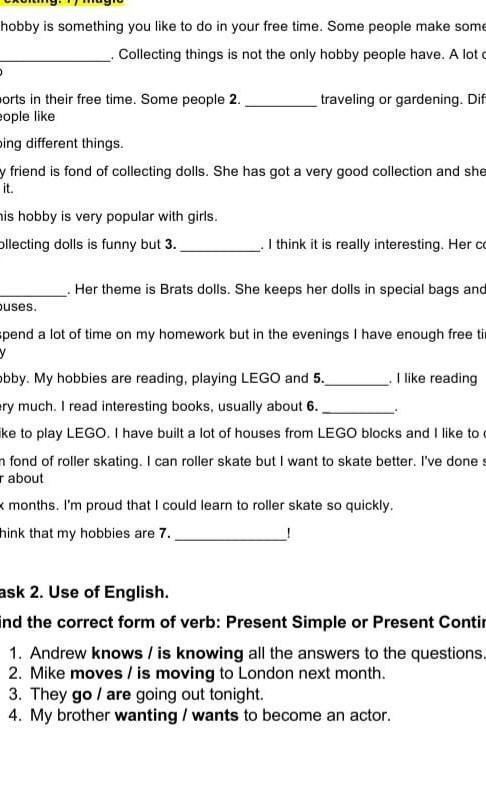 1. knows 2. is moving 3. are 4. want
