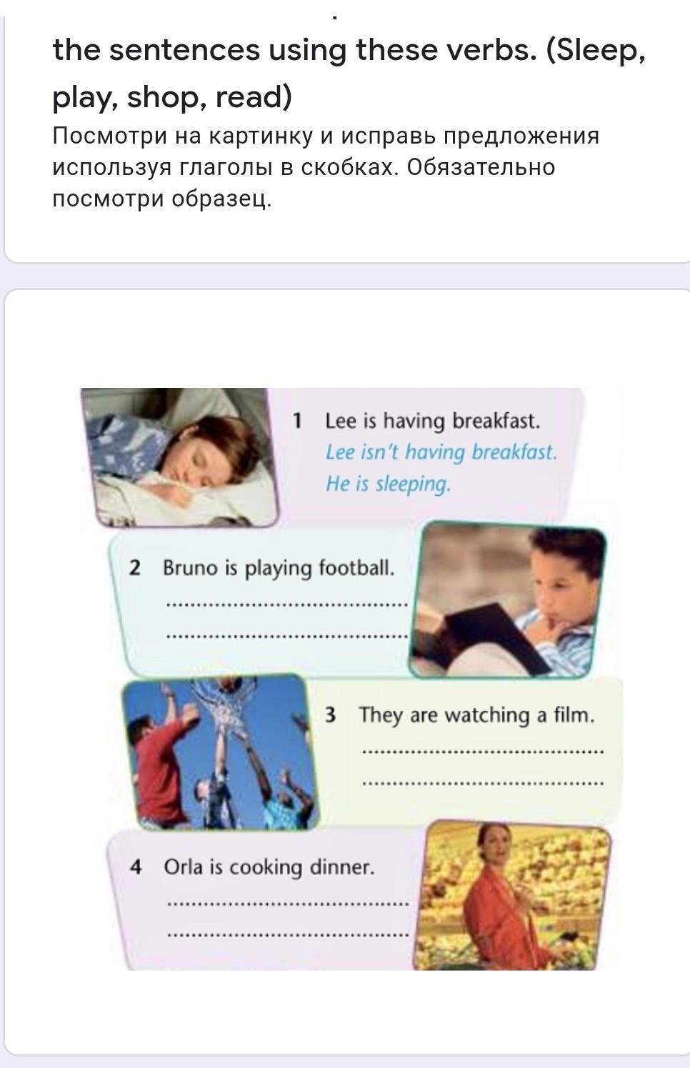 Посмотри на картинку и исправь предложения используя глаголы в скобках. Обязательно посмотри образец