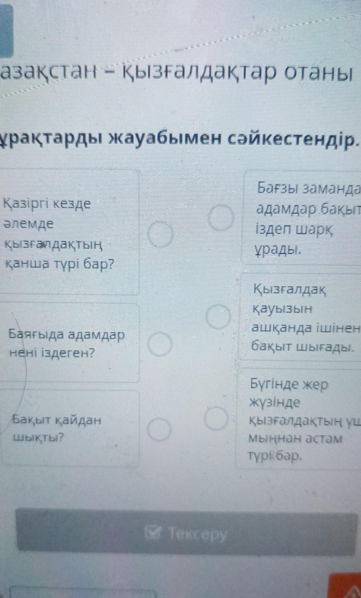 Сұрақтарды жауабымен сәйкестендір.