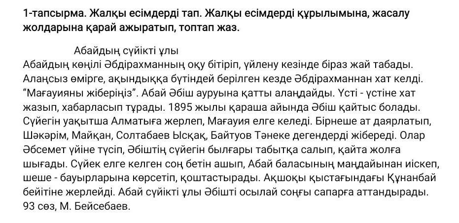 жалқы есімдерді тап.жалқы есімдерді құрылымына, жасалу жолдарына қарай ажыратып, топтап жаз.