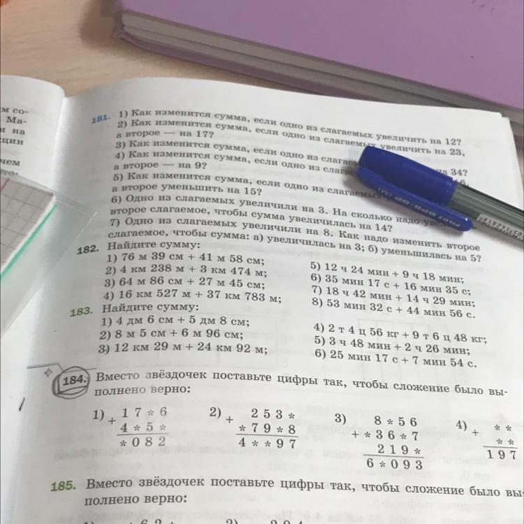 Вместе звездочек поставьте цифры так,чтобы сложение было выполнено верно (задание 184)