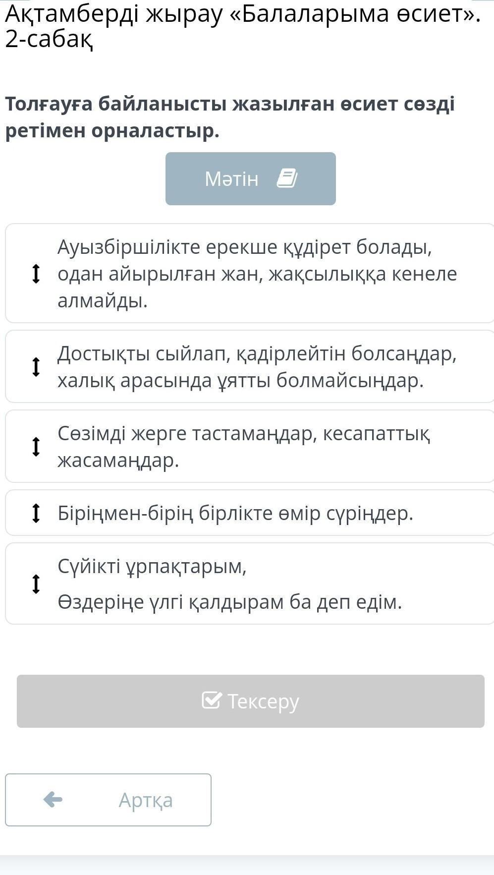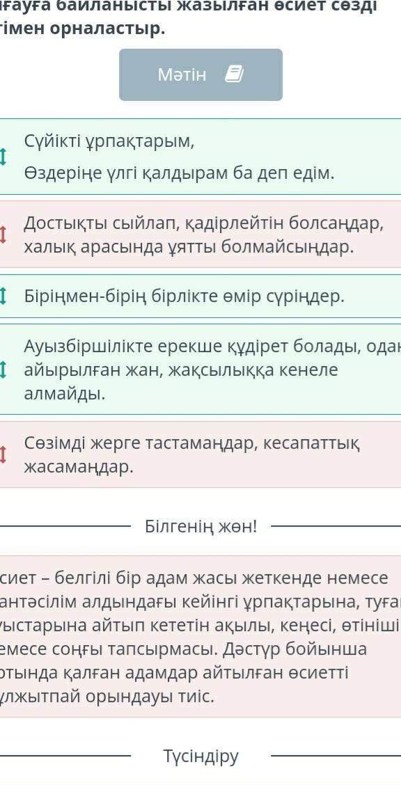 Толғауға байланысты жазылған өсиет сөзді ретімен орналастыр.