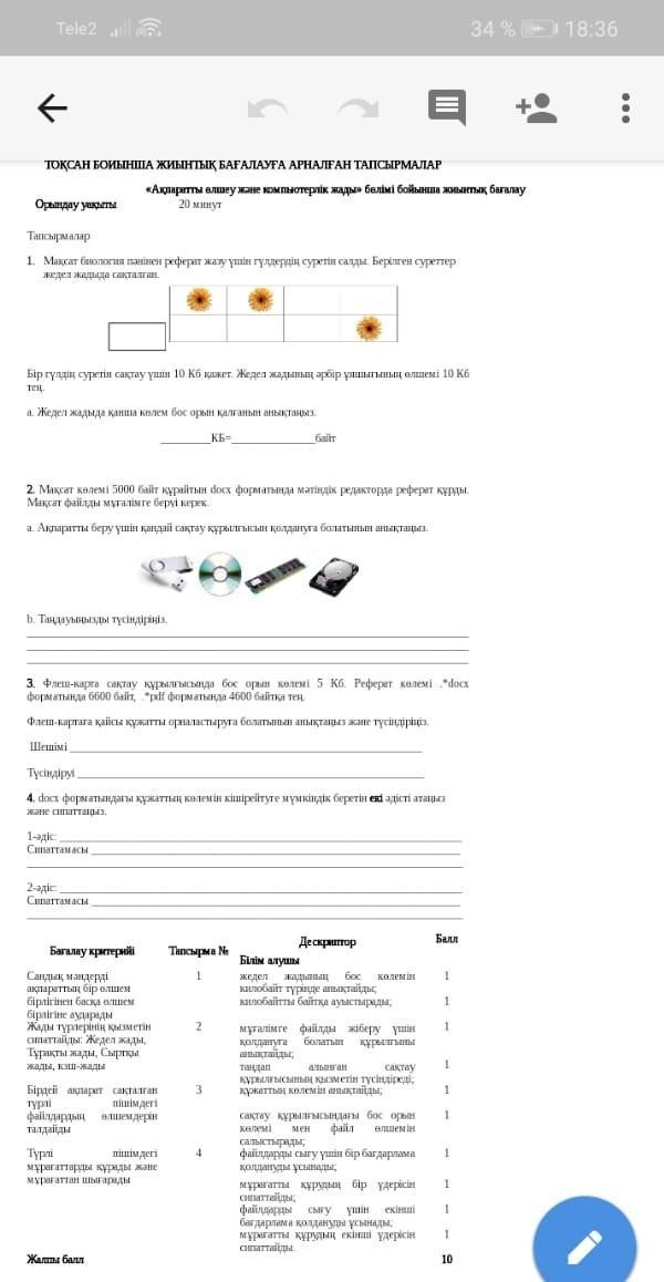 3)4600байт=4,6кб. Сондықтан да pdf форматта сақтау дұрыс болады.