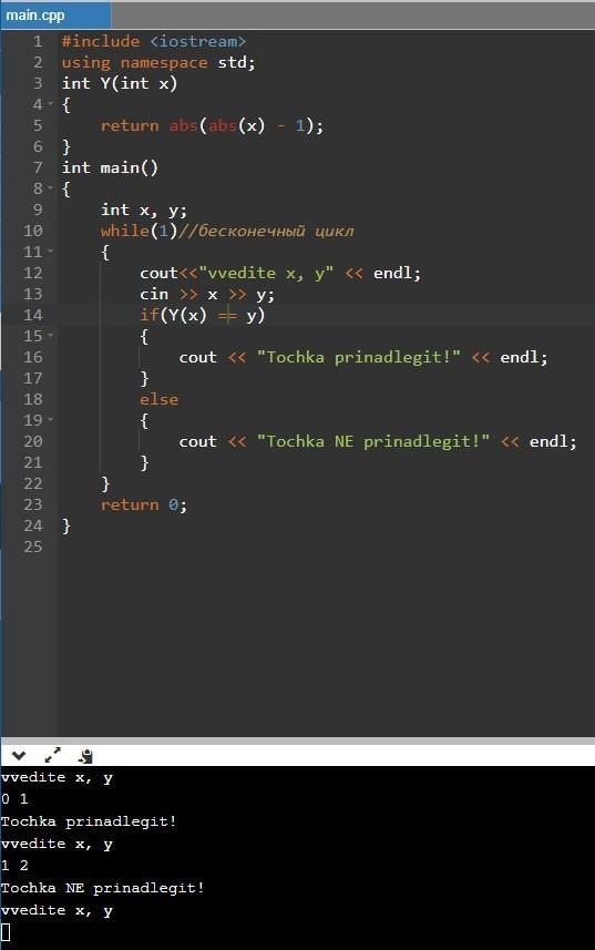(С++) Составить программу, содержащую ветвления и определяющую, принадлежит ли точка с координатами (X,Y) заштрихованной области.