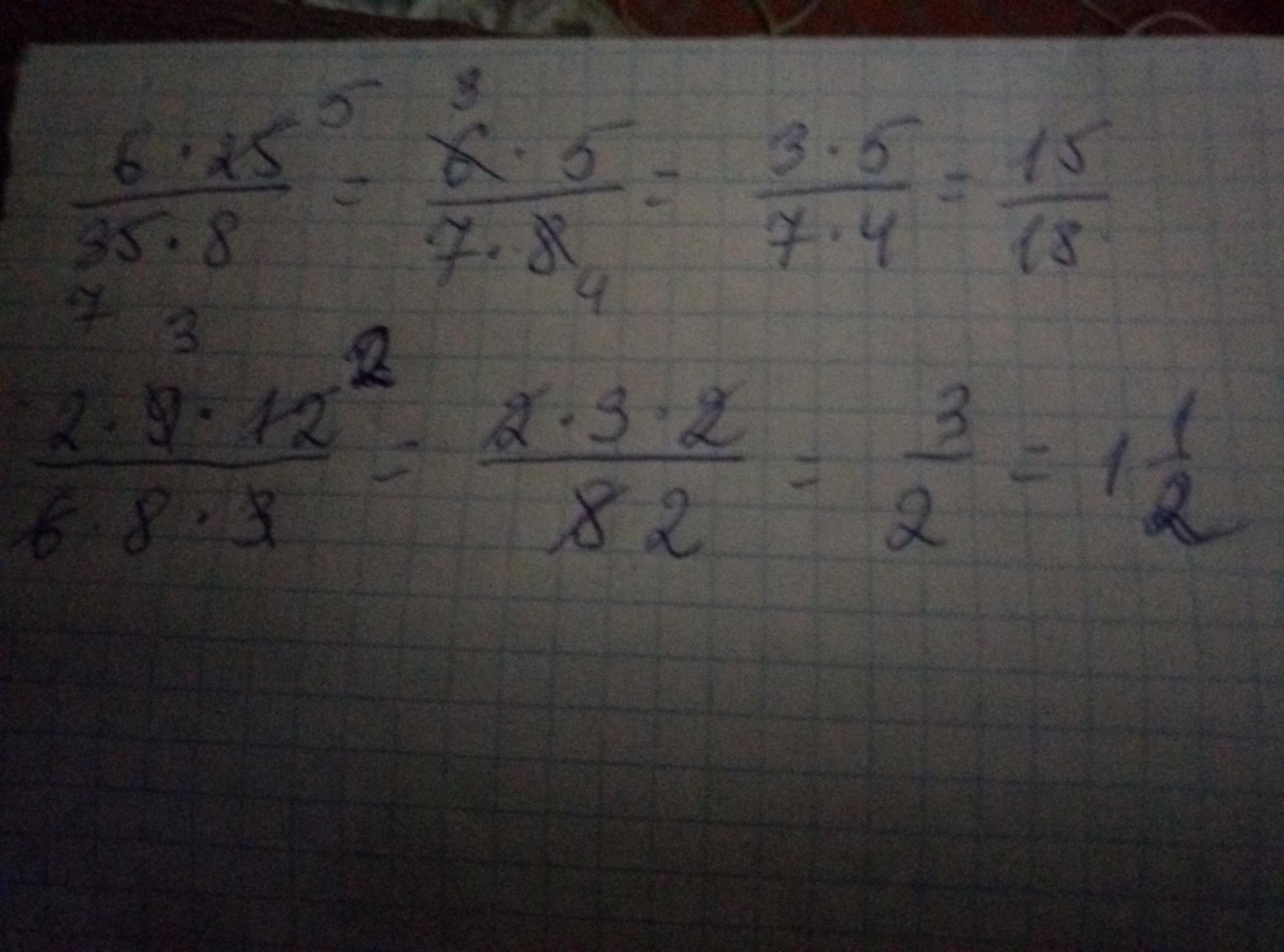 В первом примере сокращаем 6 и 8 на 2, 25 и 35 на 5