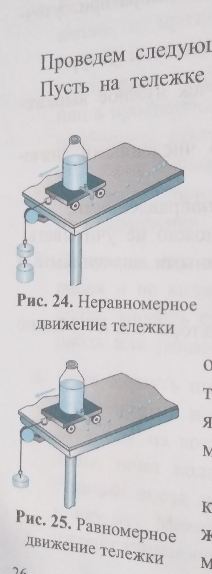 На рисунке 24, тележка движется быстрее так-как на нём тяжелее груз.