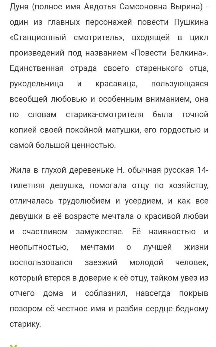 Какие качества характера можно отметить у Дуни Выриной?Какие чувства вызывают у читателя эта героиняю