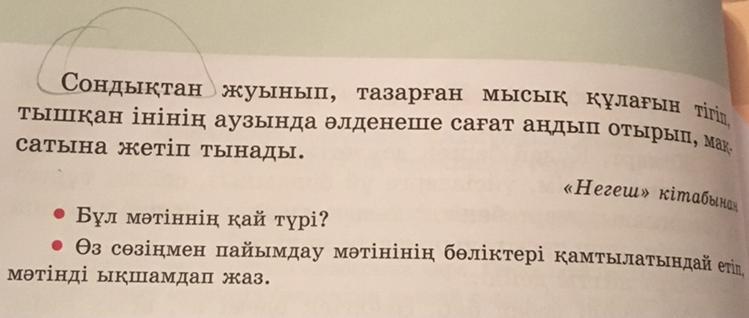 • Үй мысықтары күнде "жуынады". Сонда мысықтар тазалықты жақсы көре ме? Бұның әртүрлі себебі бар екен. Мәселе жалғыз тазалықта емес — мысықтар үстін жалаған кірін кетіріп, тамақ қалдықтарынан тазарып қана қоймайды, денесінен шығатын иісті де кетіреді. Себебі олар үшін иіс өте зиянды. Өйткені жемтігі оның иісін бұрын сезіп қойса, ол тамақсыз қалады.(келесі сөйлемді түгел көшіріп жаз)