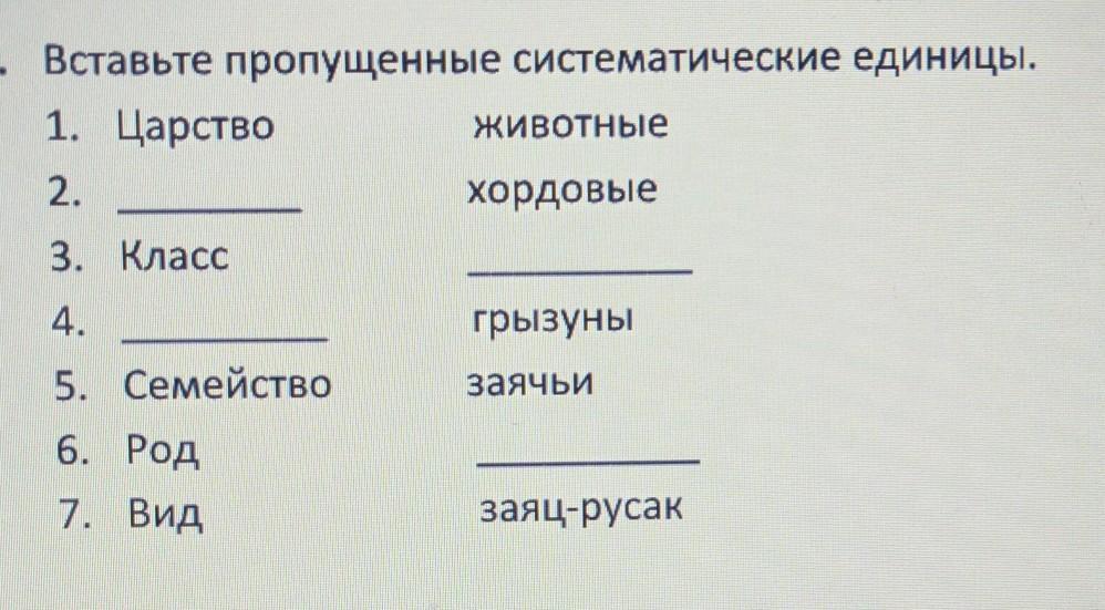 6. Вставьте пропущенные систематические единицы.