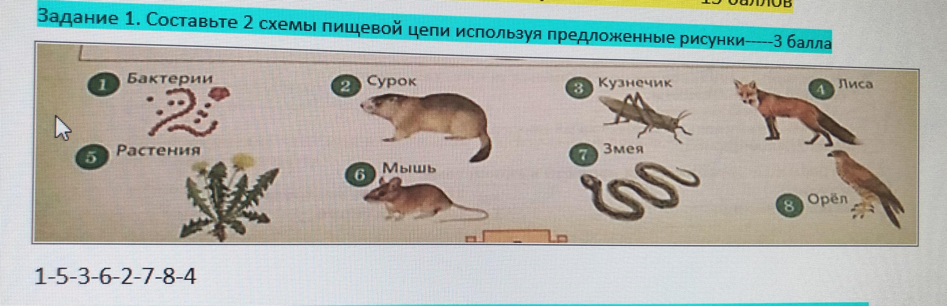 1) Семена растений едят мыши , мышей ест змеи , а змей орлы