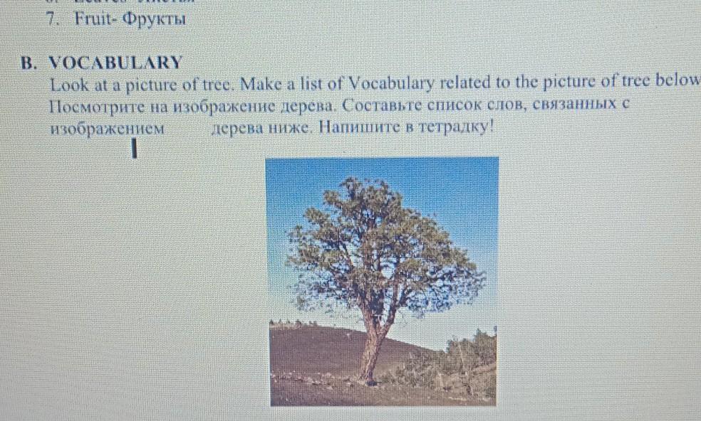 Посмотрите на изображение дерева, Составьте список слов, связанных с