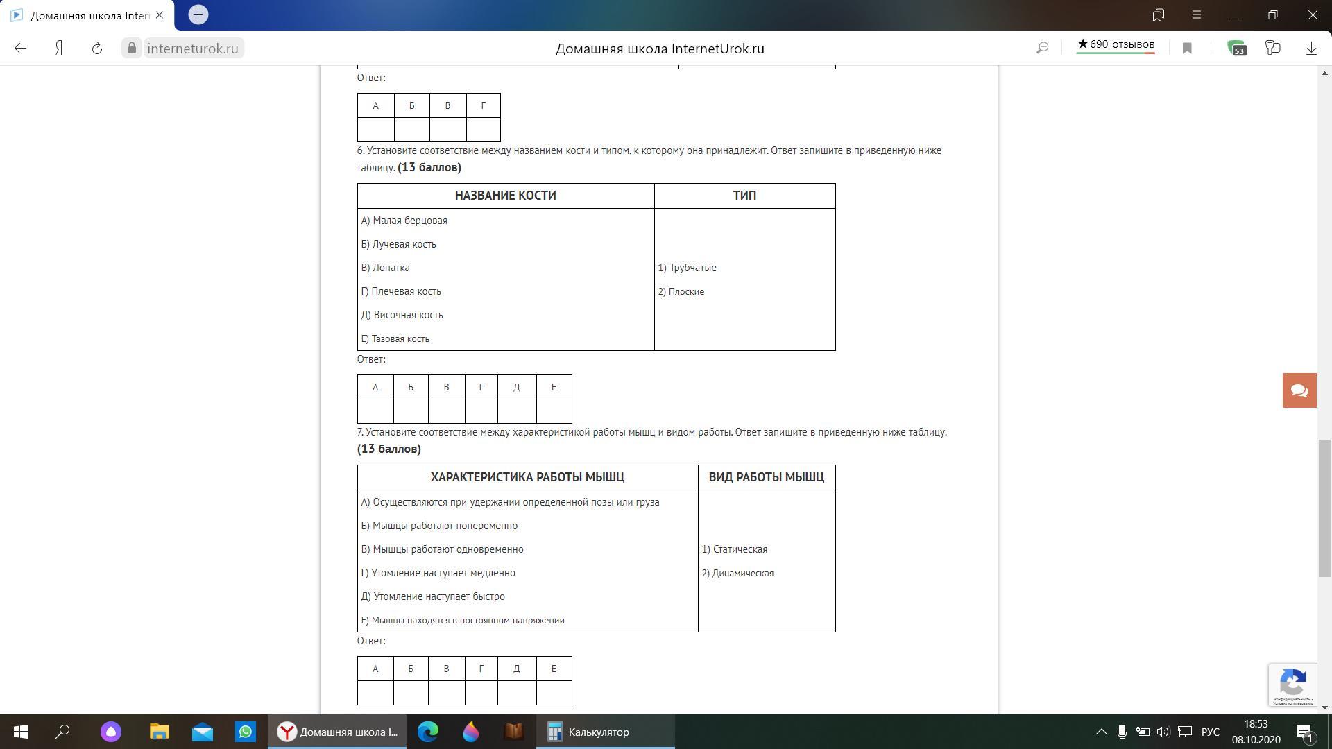 Ответ: Задание 6) трубчатые АБГ, плоские ВДЕ.