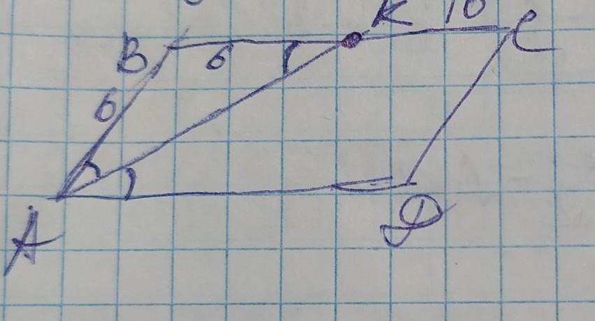 Биссектриса угла А параллелограмма АВСд пересекает сторону ВС в точке К Найдите периметр параллелограмма если ВК=6, СК=10 дано, найти решение сделать пожалуйста