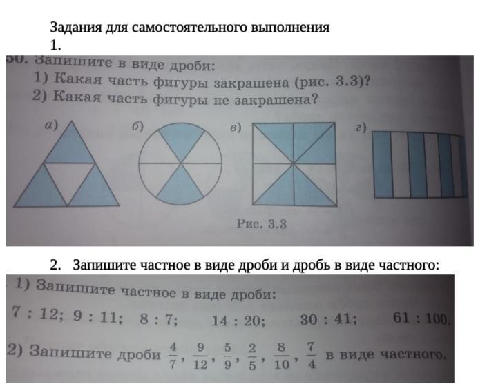 1) а)3/4 б)2/6 в)5/8 г)4/7