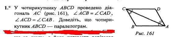 Если ∠ACB = ∠CAD и ∠ACD=CAB, тогда ∠DAB=∠CAD+CAB и ∠BCD = ∠ACB+∠ACD следовательно ∠DAB = ∠BCD. Найдём ∠ABC и ∠ADC из треугольников ΔABC и ΔADC. ∠ABC = 180°-(∠СAB+∠ACB) и ∠ADC=180°-(∠CAD+∠ACD), т.к. ∠СAB+∠ACB=∠CAD+∠ACD, тогда ∠ABC=∠ADC. Следовательно четырехугольник ABCD - параллелограмм, потому что его противоположные углы попарно одинаковые, ∠DAB = ∠BCD, а ∠ABC=∠ADC, ч.т.д.