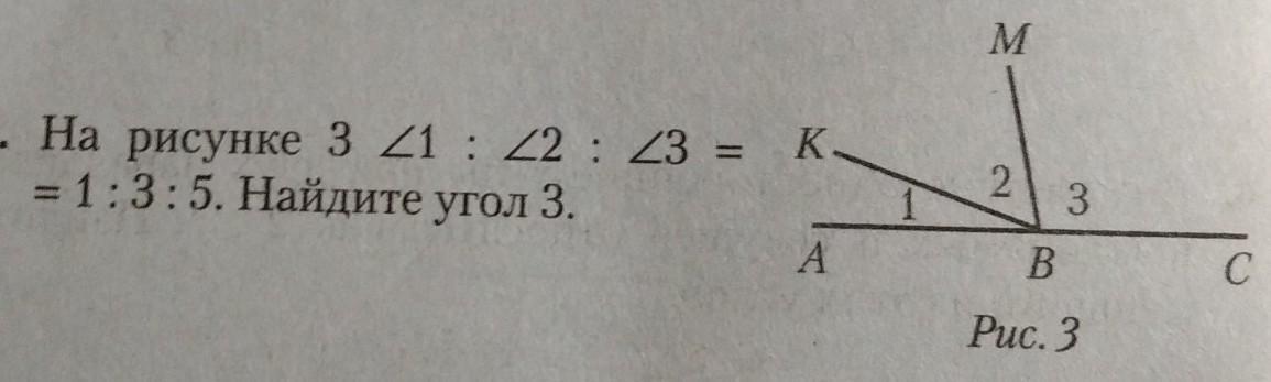 желательно в первый час решите. на рисунке 3 угол1:угол2:угол3=1:3:5. Найдите угол 3.