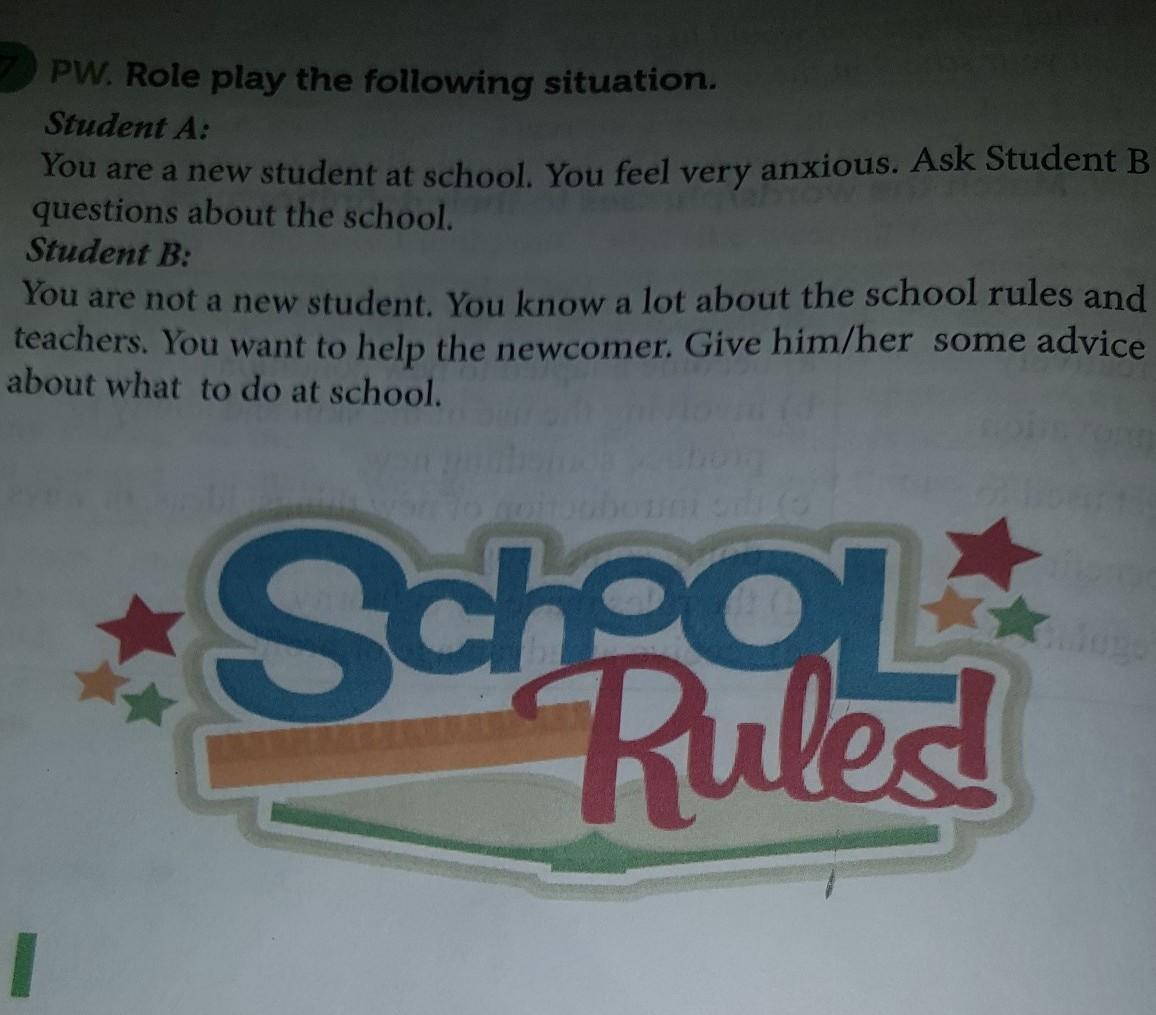 You are a new student at school. You feel very anxious. Ask Student B some