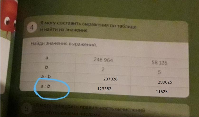248964 -:-(разделить)2=124482 58125-:-(разделить)5=11625