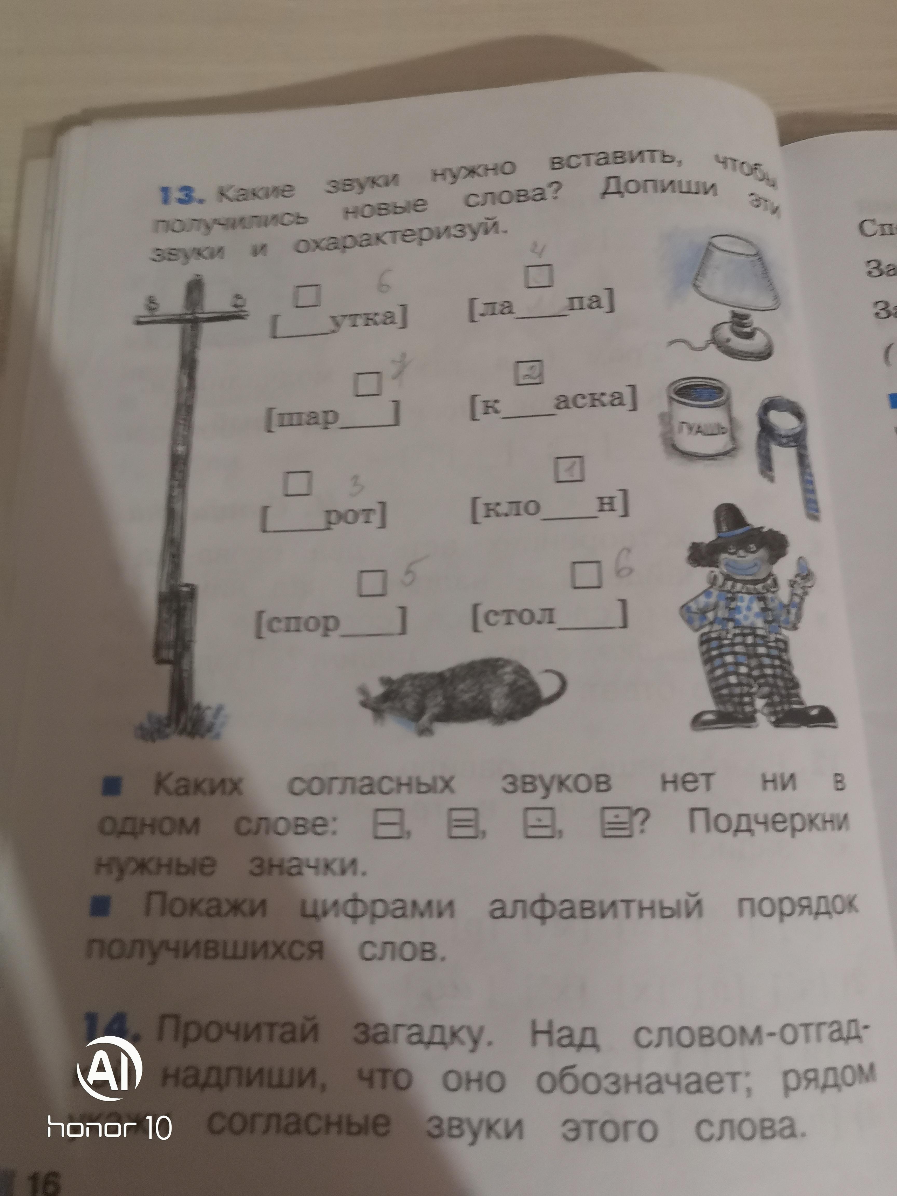 8шутка,7шарф,3 крот,5спорт,4лампа,2 краска,1 клоун,6столб.