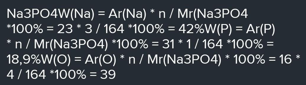Срочно Срочно Срочно Вычислить массовую долю каждого элемента в веществе, формула которого Na3PO4.