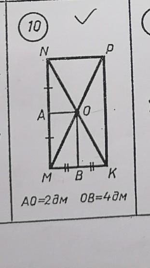 Дано: MNPK-прямоугольник NA=AM, MB=BK AO=2дм OB=4 дм
