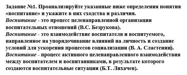 Сходства : во всех случаях присутствуют воспитательные отношения
