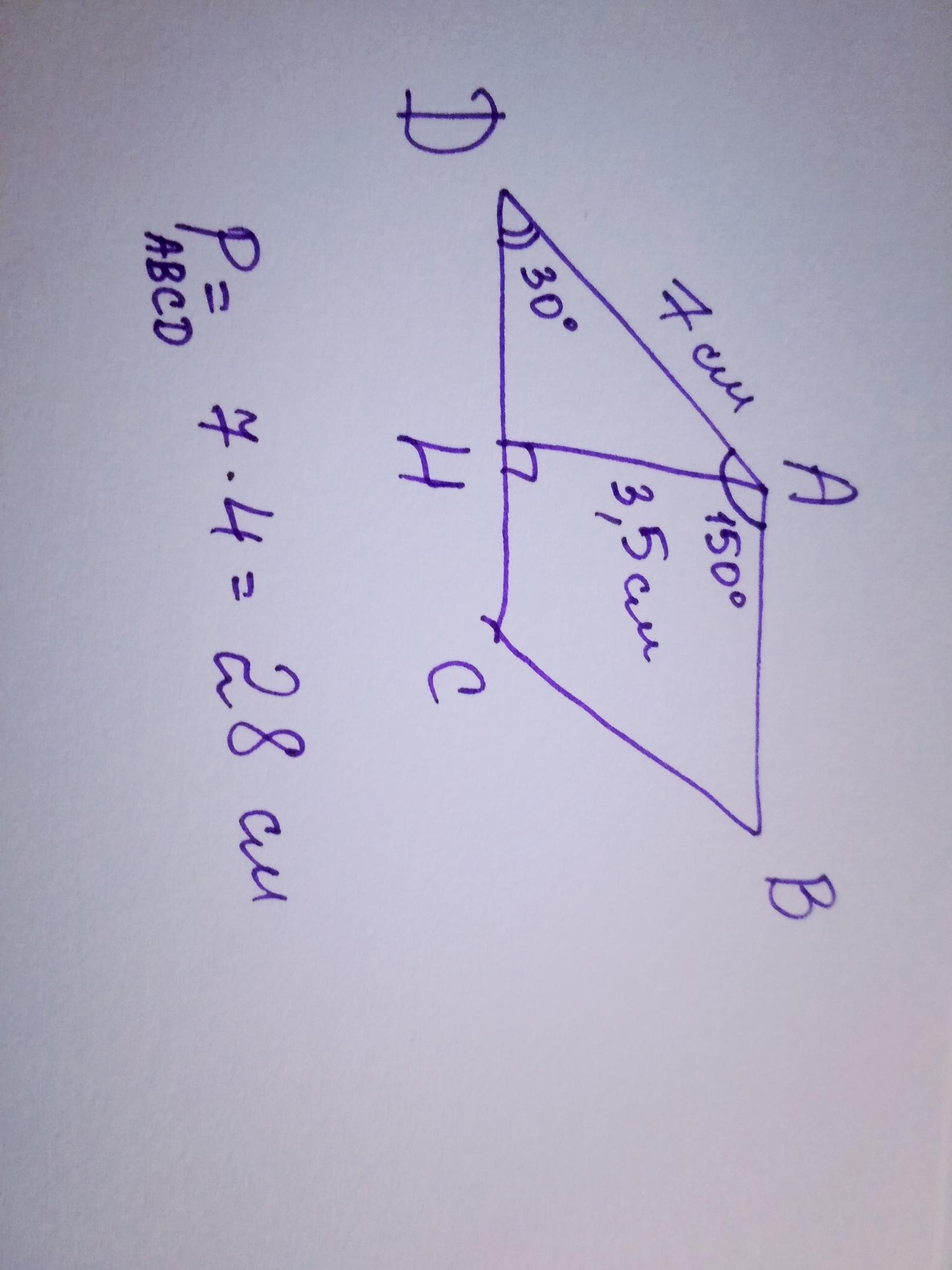 Дано: ABCD- ромб угол DAB=150 градусам; AH- высота AH- 3,5 см. Найти периметр ABCD помогите плиз