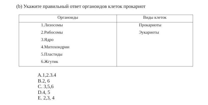 (b) Укажите правильный ответ органоидов клеток прокариот