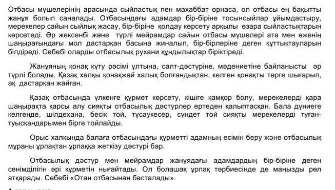 Когда члены семьи уважают и любят, эта семья самая счастливая. Члены семьи проявляют уважение друг к другу, преподнося друг другу сюрпризы, даря подарки по праздникам, поддерживая друг друга. Потому что их объединяют семейные духовные ценности. Гостеприимство семьи варьируется в зависимости от национальности, традиций и моды. Поскольку казахский народ - гостеприимный народ, в казахской семье давно утвердились такие семейные программы, как чествование старших, забота о младших, празднование праздников в темном шаныраке. Когда ребенок рождается, он отмечает такие праздники, как июль, свадьбу в колыбели, подношение, обрезание вместе с родными. Семейные традиции и праздники укрепляют доверие и уважение членов семьи. Это также играет важную роль в обучении будущих поколений. Потому что «Отечество начинается с семьи».